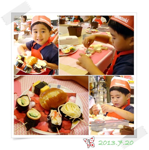 サンドイッチ料理教室、今日パンのお寿司セートだよ~凄く楽しかった^^今天的兒童三明治料理教室 學的是麵包壽司 很實用 很好吃 REO更開心~! 讚!